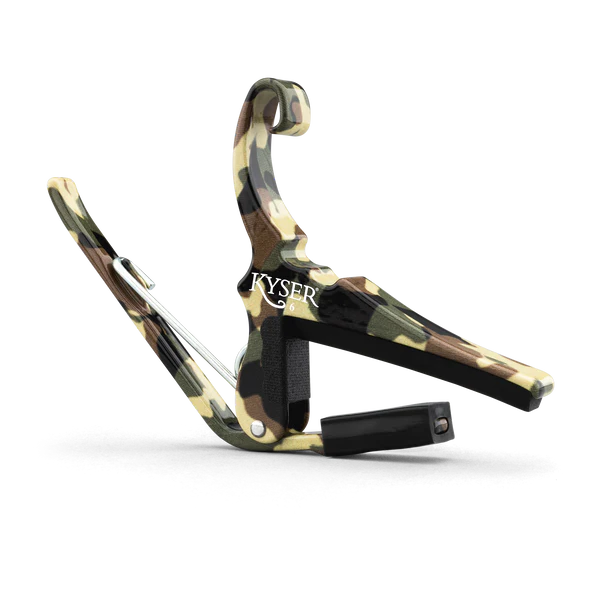 The first. The fastest. The Original. Kyser Quick-Change acoustic guitar capos changed everything when they hit the clubs of Deep Ellum, Texas in the 1980s, and they're still the quickest capos in the West, coveted by the biggest artists on the world's biggest stages. The unique trigger mechanism never misfires, offering precise, reliable tuning that's always dead-on. Stick it on whatever fret you'd like and it stays where it should, or leave it on the headstock til you need it. Your Kyser keeps close.