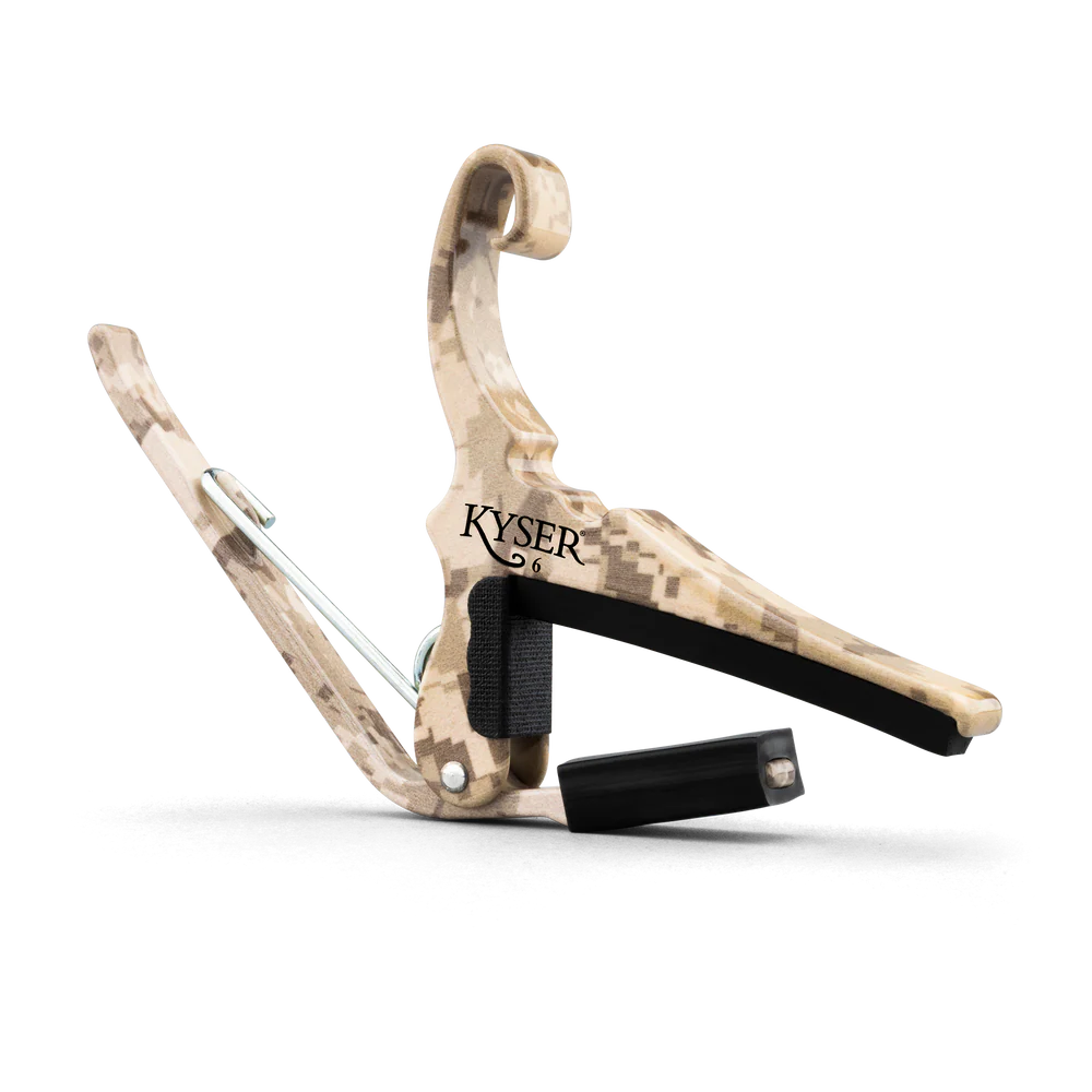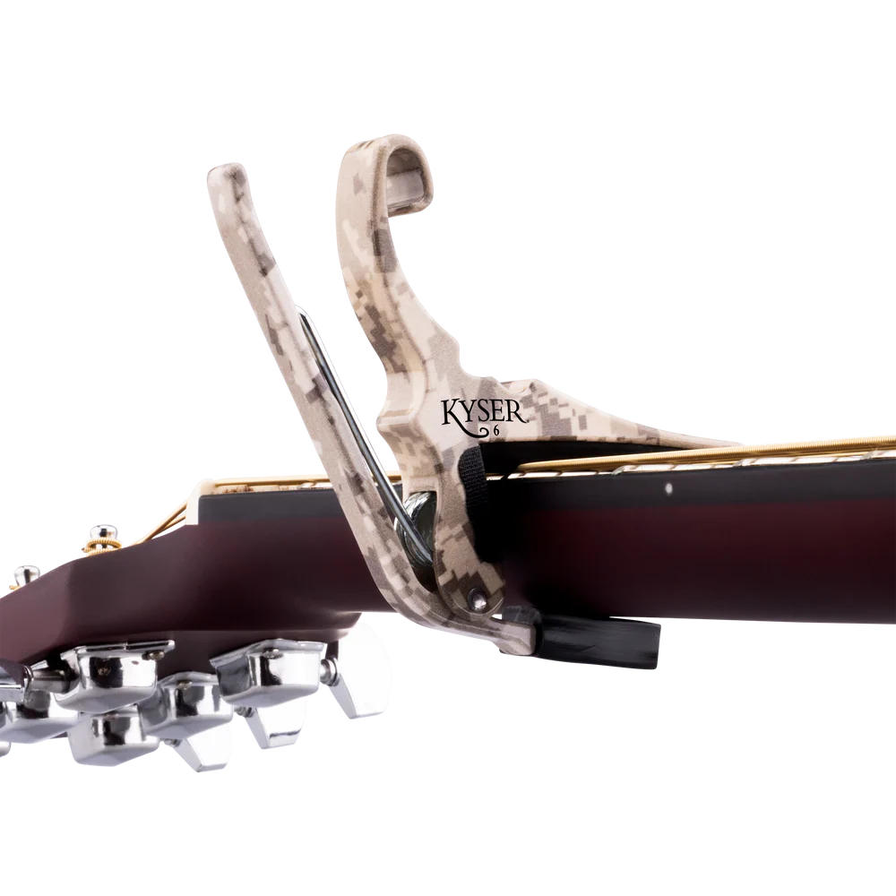 The first. The fastest. The Original. Kyser Quick-Change acoustic guitar capos changed everything when they hit the clubs of Deep Ellum, Texas in the 1980s, and they're still the quickest capos in the West, coveted by the biggest artists on the world's biggest stages. The unique trigger mechanism never misfires, offering precise, reliable tuning that's always dead-on. Stick it on whatever fret you'd like and it stays where it should, or leave it on the headstock til you need it. Your Kyser keeps close.