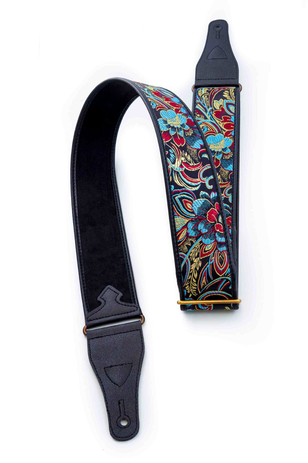 Beppu II Guitar Strap: Beppu (別府市; Beppu-shi) is the Japanese city of hot springs, known for its "hells on earth" and its unique baths found nowhere else in the world. Beppu boasts the largest number of "onsen" (steam vents rising from the earth) in all of Japan, as well as the highest volume of hot water globally. We wanted to dedicate a guitar strap to this fascinating place and found a spectacular fabric that captures that characteristic Japanese style. This strap, with its black background and embroidered botanical motifs, is an absolute beauty, capable of enhancing even the simplest guitar, if one ever considers their guitar plain ;) And if that's the case, this strap will certainly make your guitar look much more elegant.