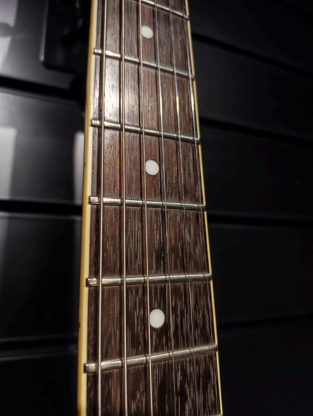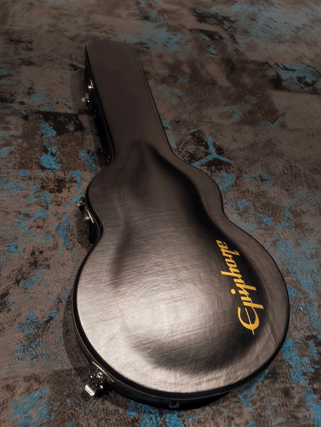 A beautifully playing guitar, this Epiphone has done the rounds and has been loved for a fair few years. It has a fair bit of light wear and scratches as is to be expected but still plays wonderfully. Comes with a proper Epiphone hardcase as well as some miscellaneous goodies (cloth, cable, strap, picks, finger ease, clip-on tuner and string winder)