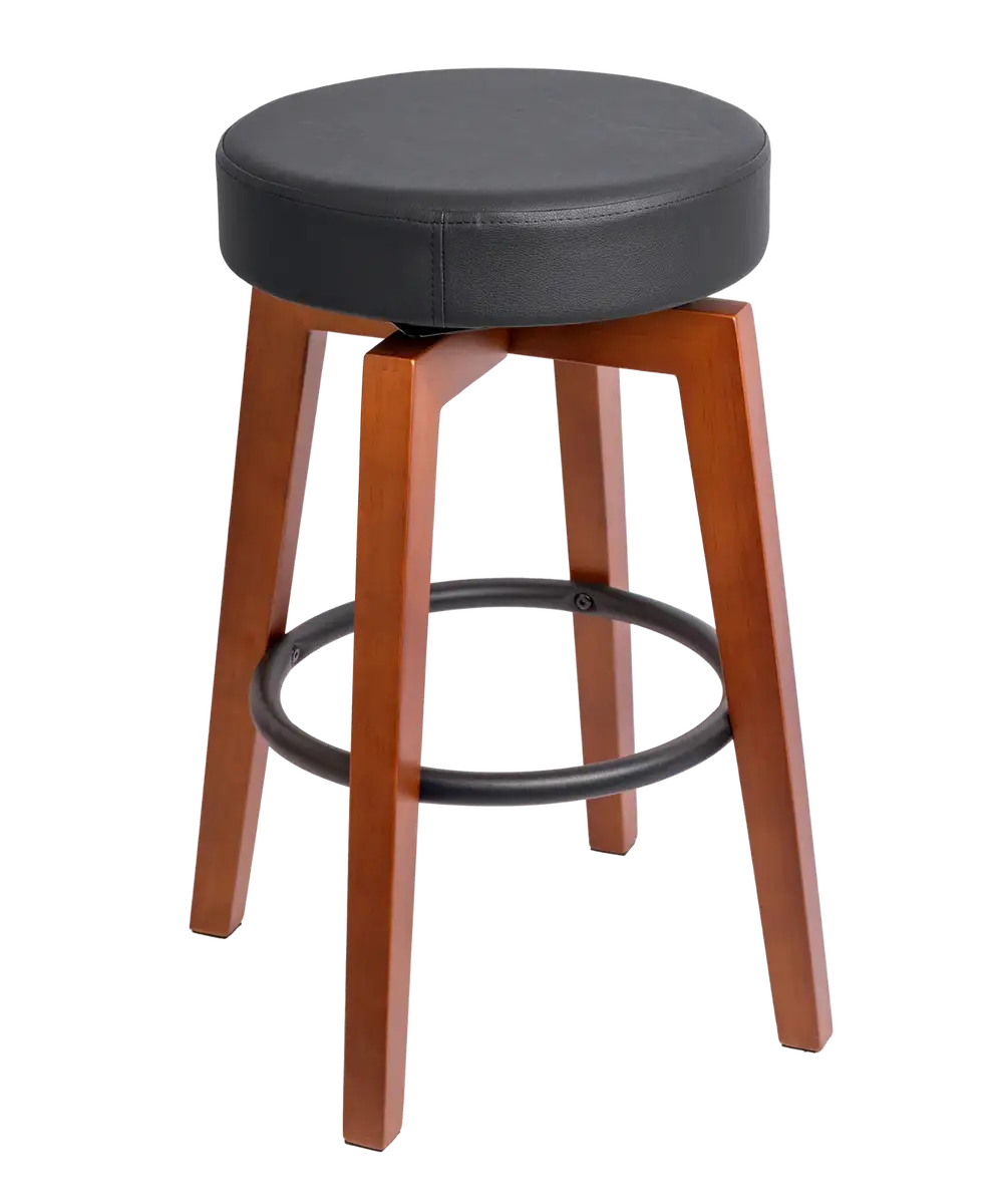Musician’s stool. Heavy duty stool with solid wooden legs and sturdy reinforcing ring. Comfortable foam padded black vinyl seat with full 3600 swivel. Perfect for the studio, duo work, the stage, home bar/kitchen or anywhere you like to swivel!