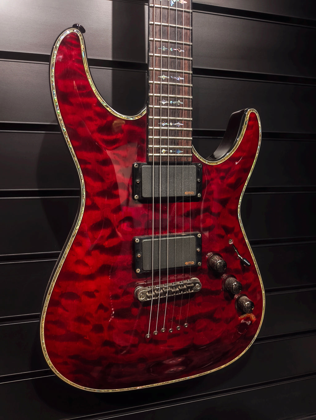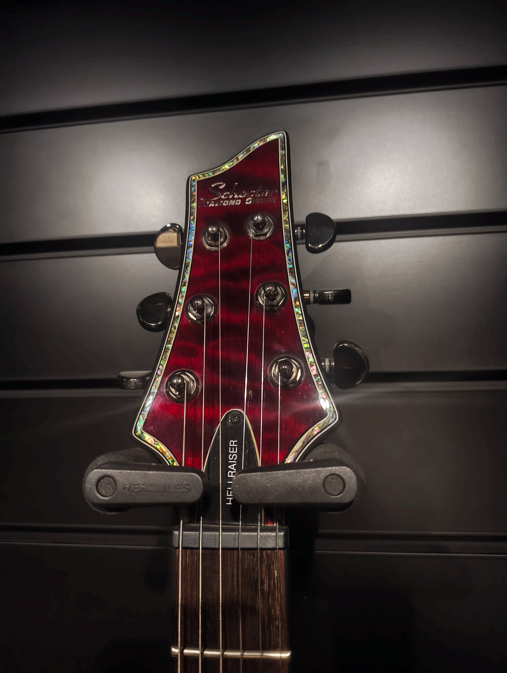 Schecter Hellraiser Diamond series in a Black Cherry finish. Made in Korea, 2010.