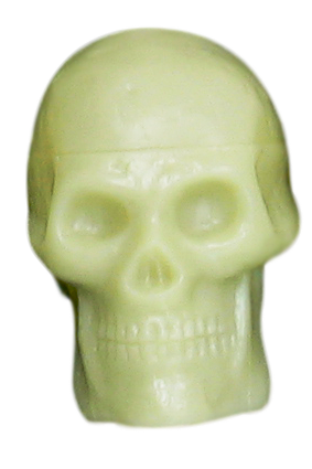 Bead brain skull shaker. Skull shaped 2½" plastic shaker.